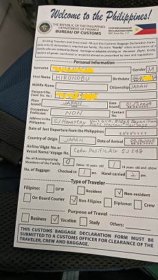 フィリピン(セブ島)の場合、 eTravel というサイトにアクセスして必要事項を入力し最後にQRコードを取得します。空港の税関でQRコードを提示して読み取ってもらえばOKです。