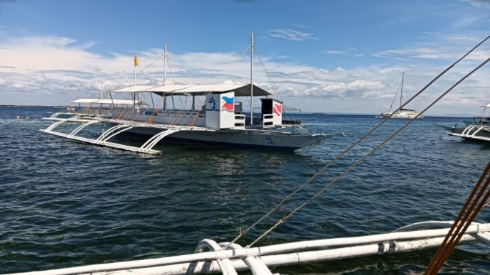 フィリピンのバンカーボートという船でダイビングスポットへ向かいます。